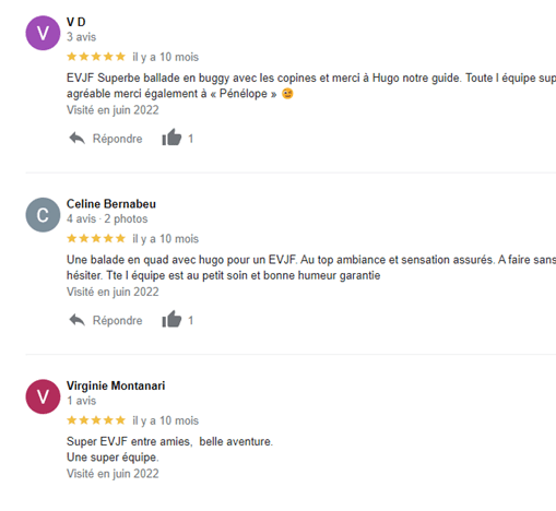 Voici un petit condensé des retours clients EVG/EVJF :